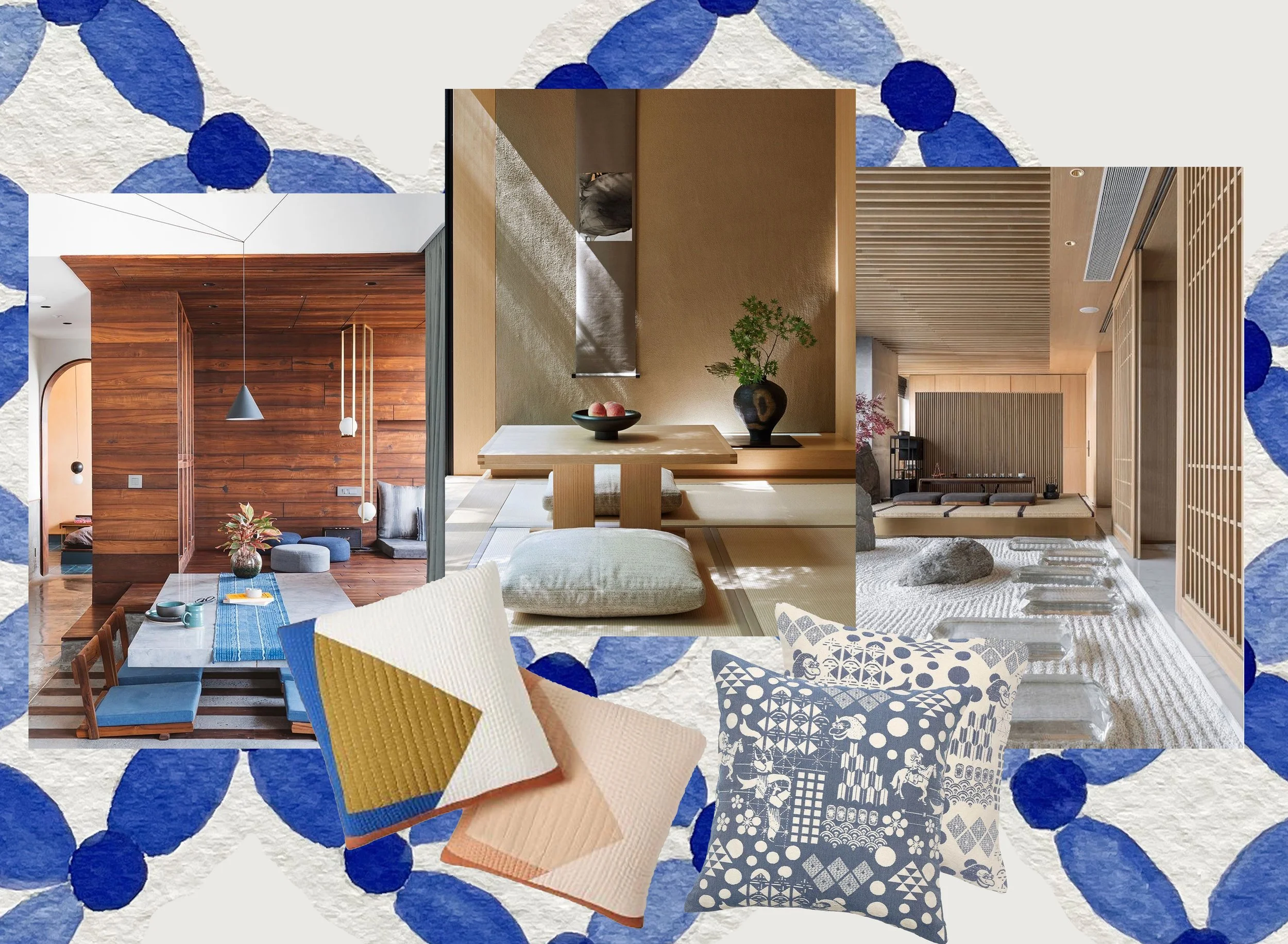 Serene GeometricsPhotoshop, Hand Painted This print collection for the home is inspired by traditional Japanese pottery.